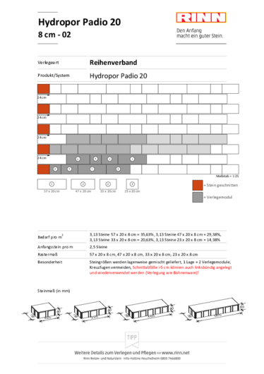 Der cleane, innovative Look des Hydropor Padio passt gut zu einem modernen Baustil mit geradlinigen Flächen. Die vier Steingrößen in 20 cm Steinbreite eignen sich für große Einfahrten, Innenhöfe oder Plätze und werden wie Bahnenware linear verlegt.