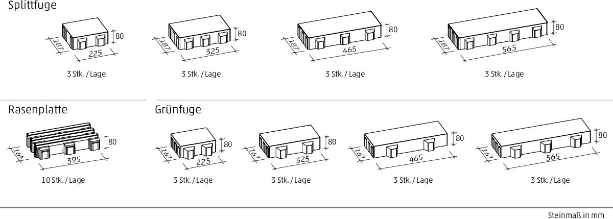 • Vier Steingrößen werden lagenweise gemischt geliefert