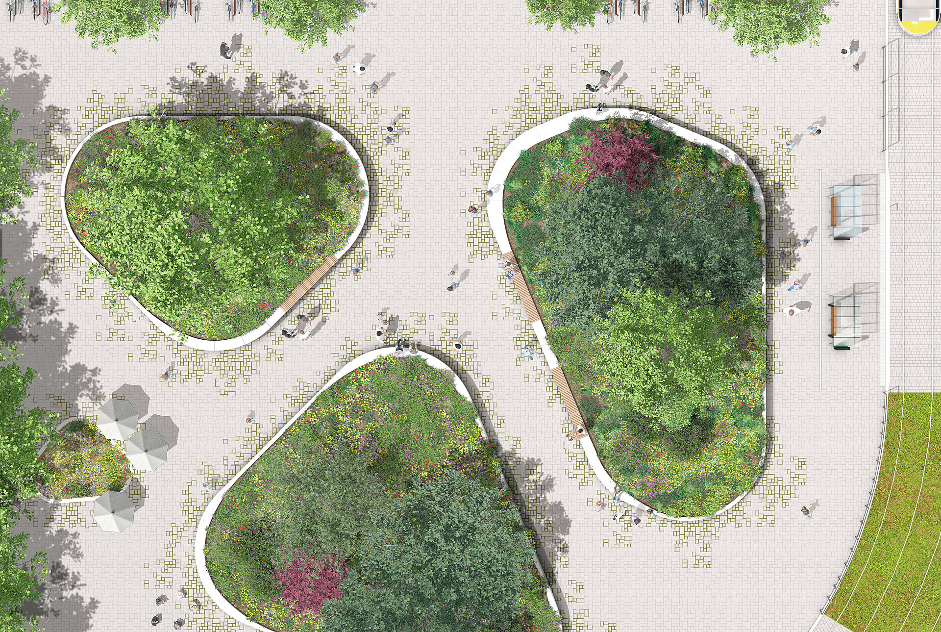 Entwickeln Sie spielerisch mit Grundrissen, Breiten und Höhen attraktive grüne Inseln, ganz nach den Anforderungen Ihres Projekts. Aus der Vielzahl der Kombinationen gerader und radialer Formteile in drei Breiten lassen sich überraschend leicht individuelle und beeindruckende Gestaltungen erschaffen. Sie helfen, Verkehrswege zu ordnen oder Blicke zu lenken und laden an den passenden Stellen zum Sitzen und Verweilen ein – mitten im Grünen.
