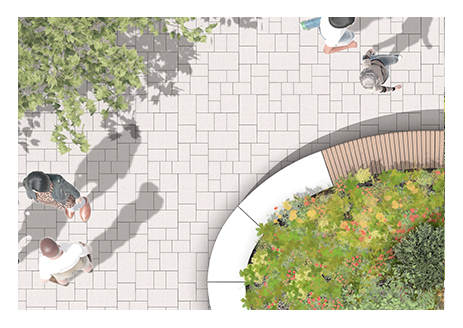 Das designorientierte Möblierungsprogramm Urbane Grüninseln ist eine weitere Lösung für mehr Stadtgrün - entwickelt von Rinn. Als erstes Baukastensystem seiner Art ermöglicht es die Planung individuell geformter Pflanzbeete für den öffentlichen Freiraum. Das modulare Konzept der vier Systeme vereinfacht für Planende die Gestaltung von Beeten, Verkehrsinseln und Baumquartieren, mit dem Ziel, durch mehr grünen Freiraum die Lebensqualität und die Klimaresilienz urbaner Aufenthaltsbereiche zu verbessern. Urbane Grüninseln passen perfekt zu den Schwammstadt Bodenbelägen. Als befestigte Flächen mit hohem Grünfugenanteil schaffen sie vitale Cooling-Spots für eine kühlere Stadt mit mehr Raum für Flora und Fauna.