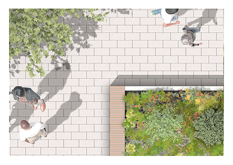 Mit der Erfahrung aus vielen Projekten wurden die Dimensionen der Bauteile entwickelt. Das Beet stellt die Fläche und den Wurzelraum eines vollwertigen Baumquartiers zur Verfügung.