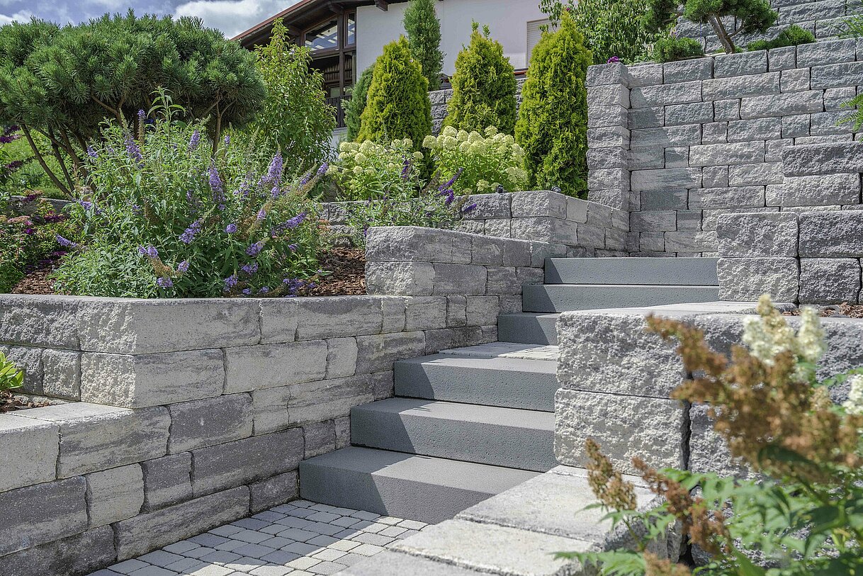 - Freistehend oder hinterfüllt mit Hinterbeton bis 1,50 m Höhe