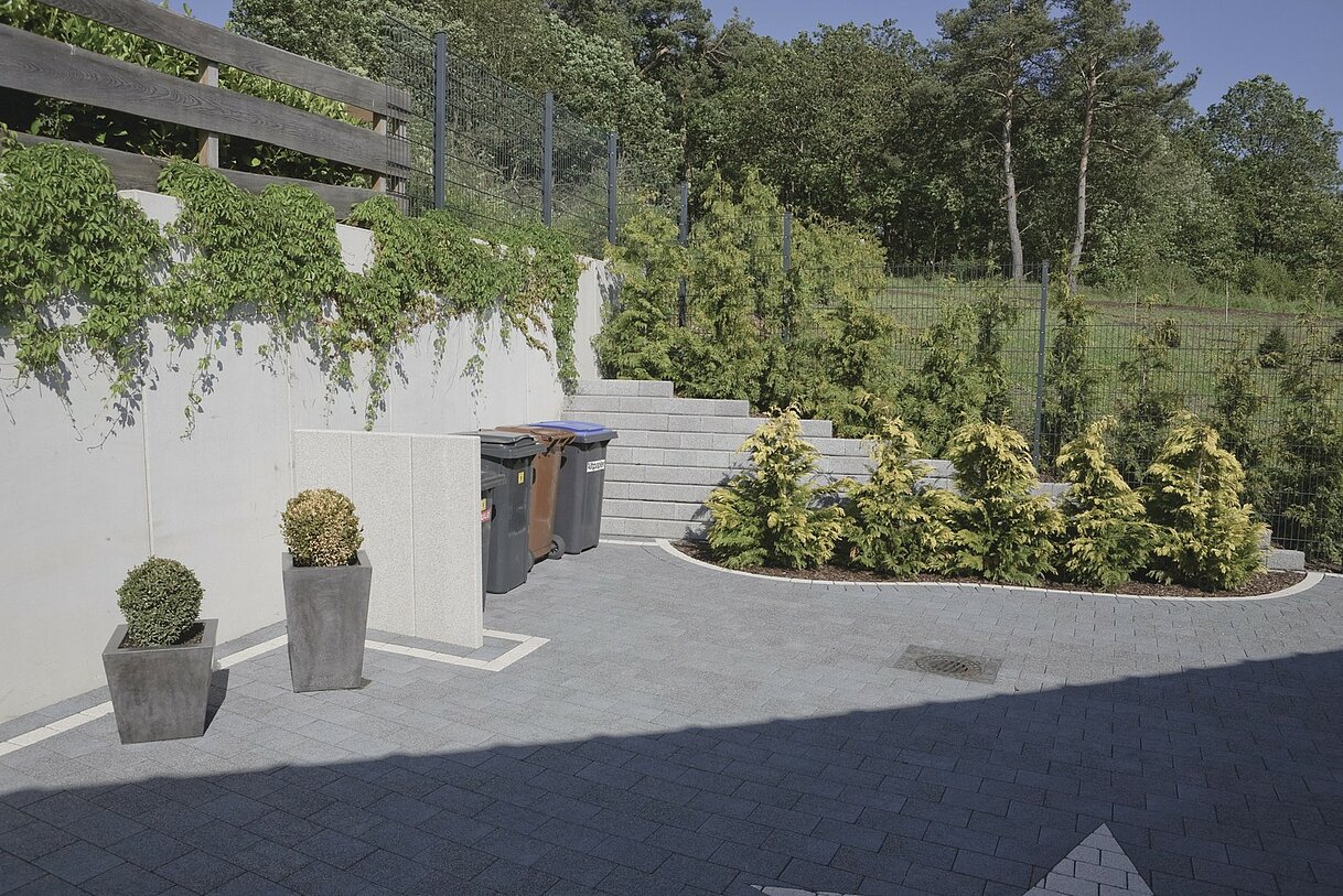 - Offenporiger, wasserspeichernder Beton; in offener Bauweise ist eine Bepflanzung möglich