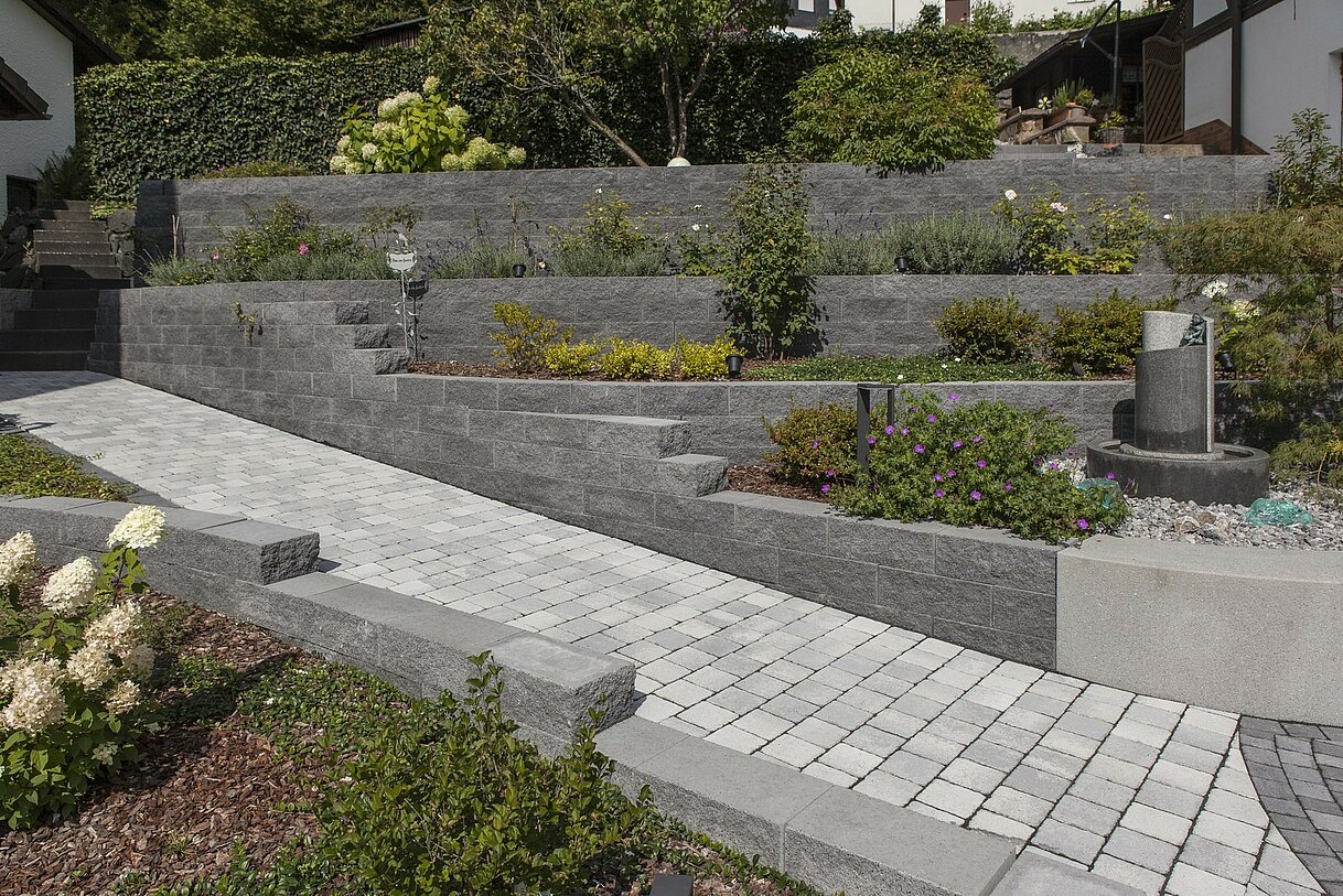 - Stützmauersystem für höhere Ansprüche, zur Befestigung von Geländesprüngen, Hängen und Böschungen