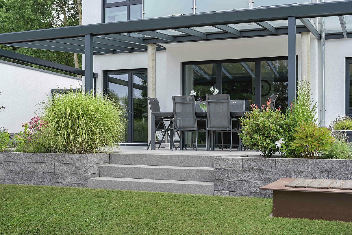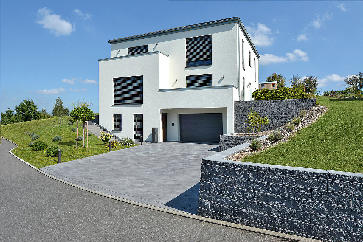 - Moderne, homogene Optik mit geradliniger Fuge und bossierten Sichtseiten