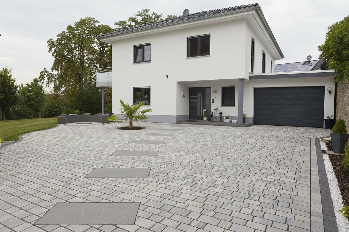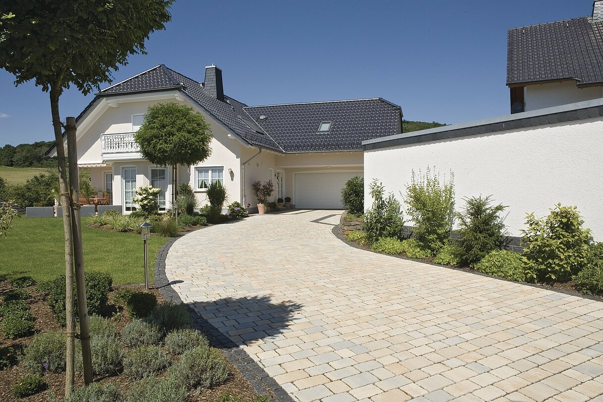 Hydropor La Strada ist ein Pflaster, das für eine unregelmäßige Verlegung konzipiert ist: Die Steine werden ohne eine vorbestimmte Reihenfolge verlegt, angeordnet in verschieden breiten Reihen von 15 und 18 cm. So entsteht eine optisch sehr abwechslungsreiche Fläche. Bei einem modernen Baustil unterbricht das lebendige Fugenbild die strengen Linien. Und natürlich passt es ebenso zur typischen Lockerheit mediterraner Gestaltung.