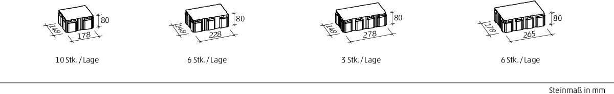 Unregelmäßiges Kantenprofil. Vier Steingrößen. Verschieden breite Steinreihen. Lebendiges Fugenbild.