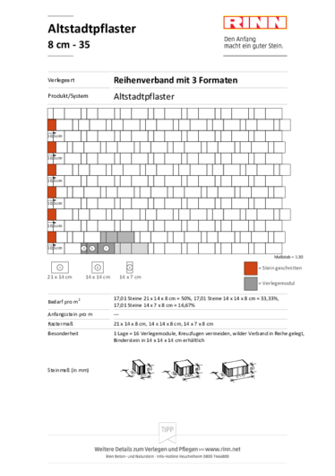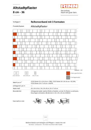 Wenn Sie Alt und Neu miteinander kombinieren wollen, dann bietet Ihnen Rinn mit dem Altstadtpflaster ein ausgereiftes Pflastersystem. Es fügt sich gut in ein architektonisch gewachsenes Umfeld ein, eignet sich aber auch als stilistischer Akzent zu moderner Architektur. Drei Steingrößen in der Oberfläche rustica mit drei Farben lassen Ihnen viele Gestaltungsmöglichkeiten.