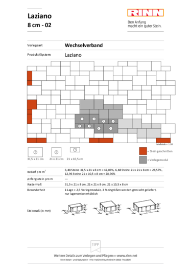 Ob Landhaus-Stil, renovierte Altbauten oder klassische Moderne - Laziano® sorgt für einen individuellen Auftritt. Im Reihenverband oder im wilden Verband verlegt, erzeugen die drei Steingrößen eine optisch abwechslungsreiche Fläche. Bei der Gestaltung haben Sie die Wahl zwischen vielen nuancenreichen Farbvariationen mit dezent abgestuftem Farbspiel.