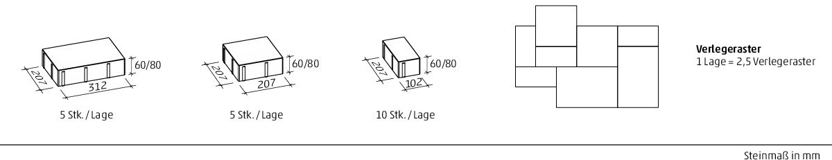 Passt zu vielen Baustilen. Wilder Verband. Optisch abwechslungsreiche Fläche. Mit Microfase.