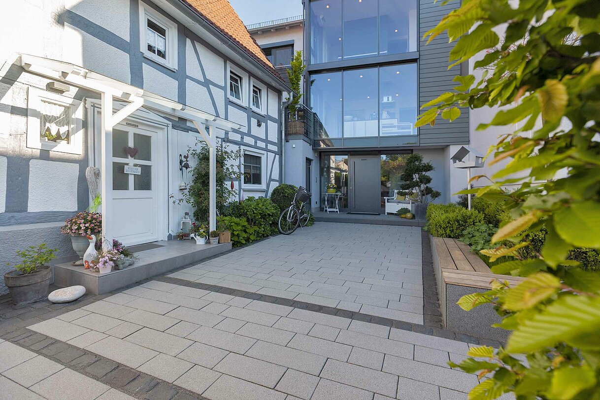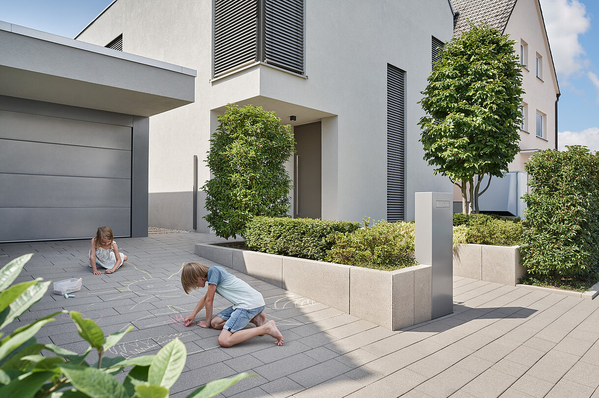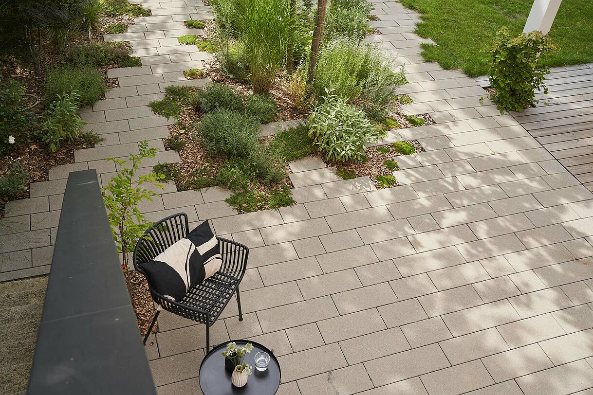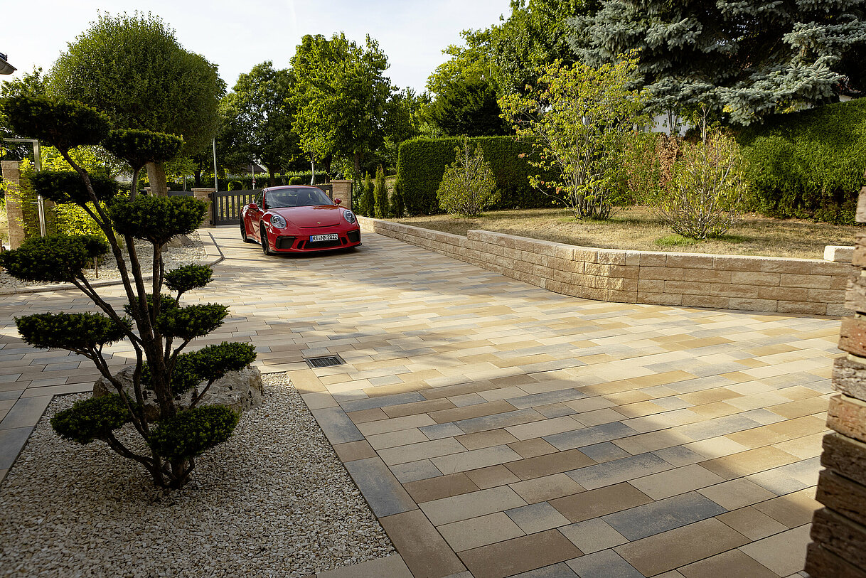 - Elegantes Pflastersystem mit großer Farbauswahl und vielen Kombinationsmöglichkeiten