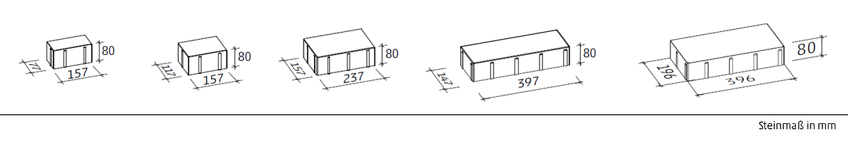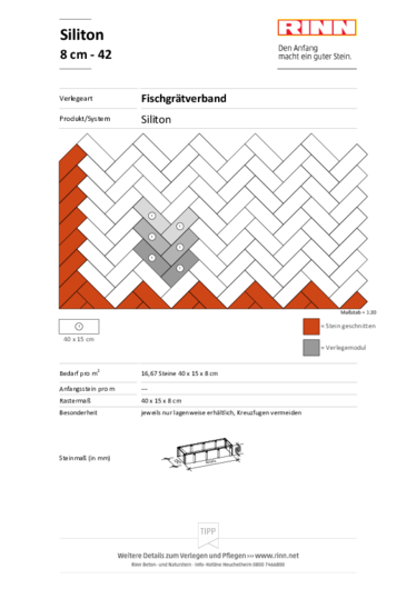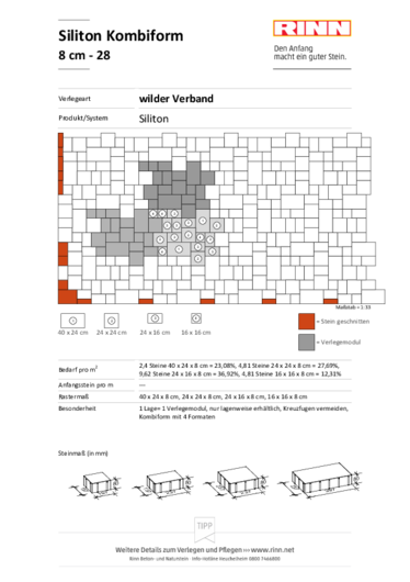 - Eignet sich für die Verlegung im Halbverband, Drittelverband und als Reihenverband mit zwei Steingrößen
