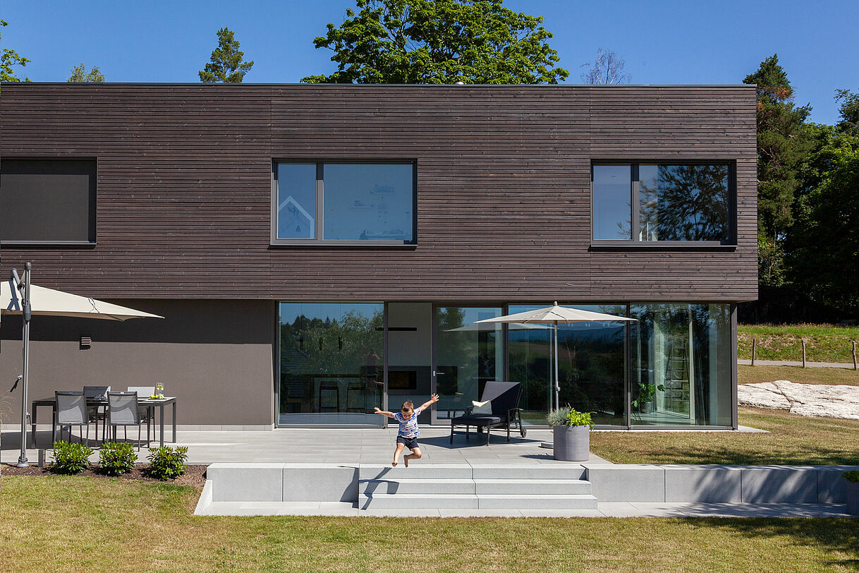 - Sichtbeton Grau mit Rutschhemmung PR 11 auf der Trittfläche