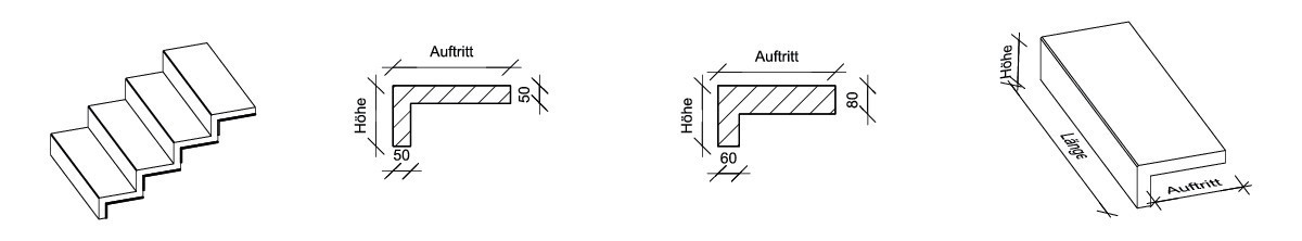 - Für vorbetonierte Treppenrohlinge oder freitragend mit Treppenbalken