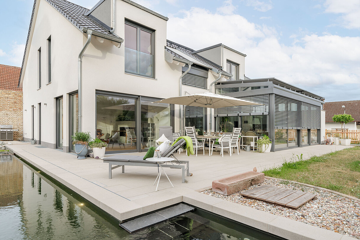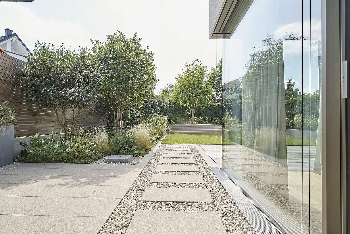 Die Natur macht Unterschiede. Und wir machen das auch. Unsere rinnit Platten sind nicht geschliffen, sondern gestrahlt. Das Ergebnis ist eine angeraute Oberfläche, die natürlich aussieht und sich auch so anfühlt: natürlich schön. Wenn Sie sich für rinnit entscheiden, eröffnet sich Ihnen die größte Produktvielfalt in unserem Sortiment – für eine stimmige Gestaltung rund ums Haus.