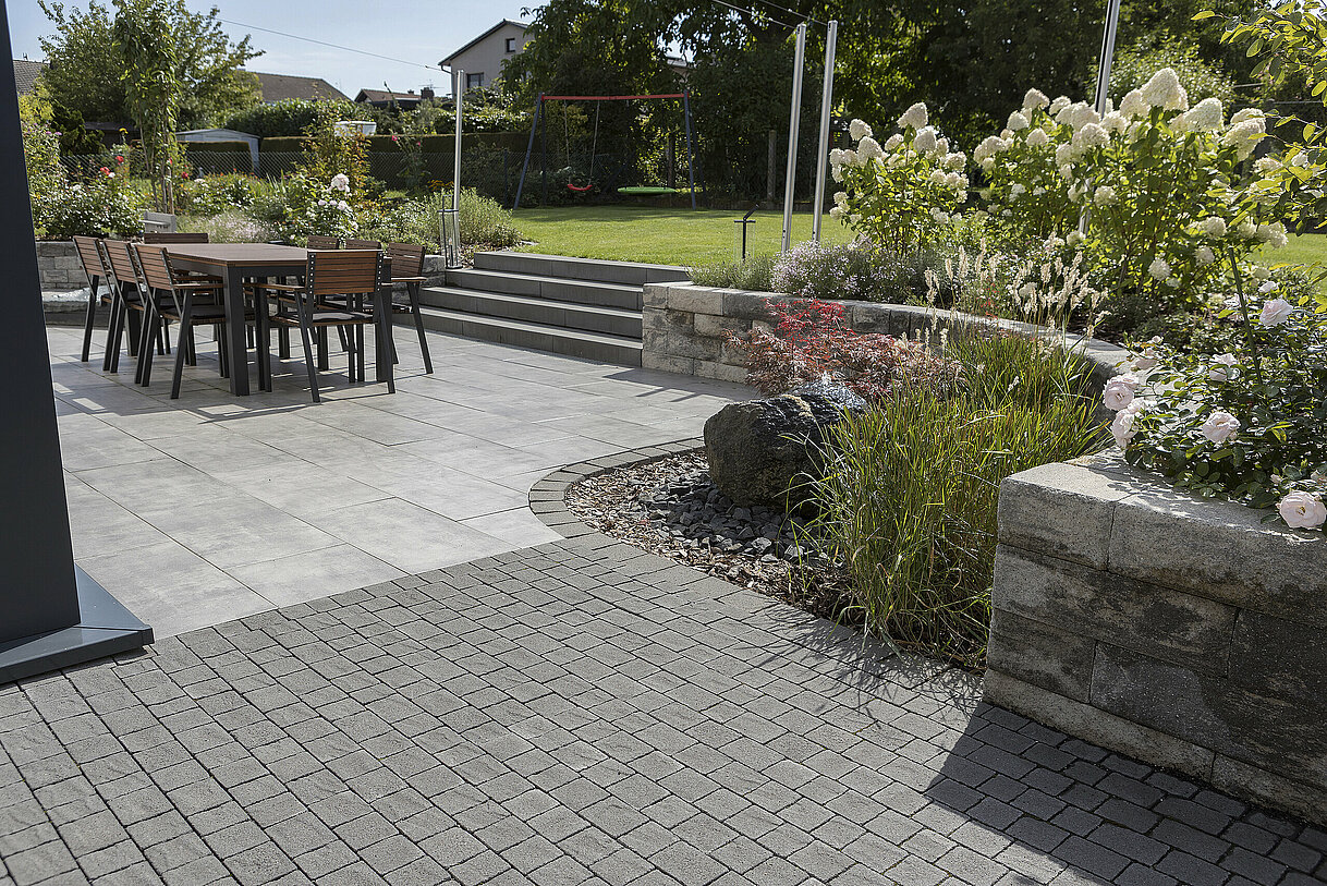 Ohne gestalterischen Bruch von drinnen nach draußen? Mit trendstone Platten vergrößern Sie Ihr Wohnzimmer nach draußen und machen aus dem Außenbereich eine Wohlfühlzone auf Augenhöhe. Die natürlich inspirierte Struktur und das großzügige Plattenformat sprechen eine klare Sprache: Fühlen Sie sich wie zu Haus! Dank der RSF 5 Oberflächenbeschichtung sind die Platten pflegeleicht und geschützt vor Flecken.