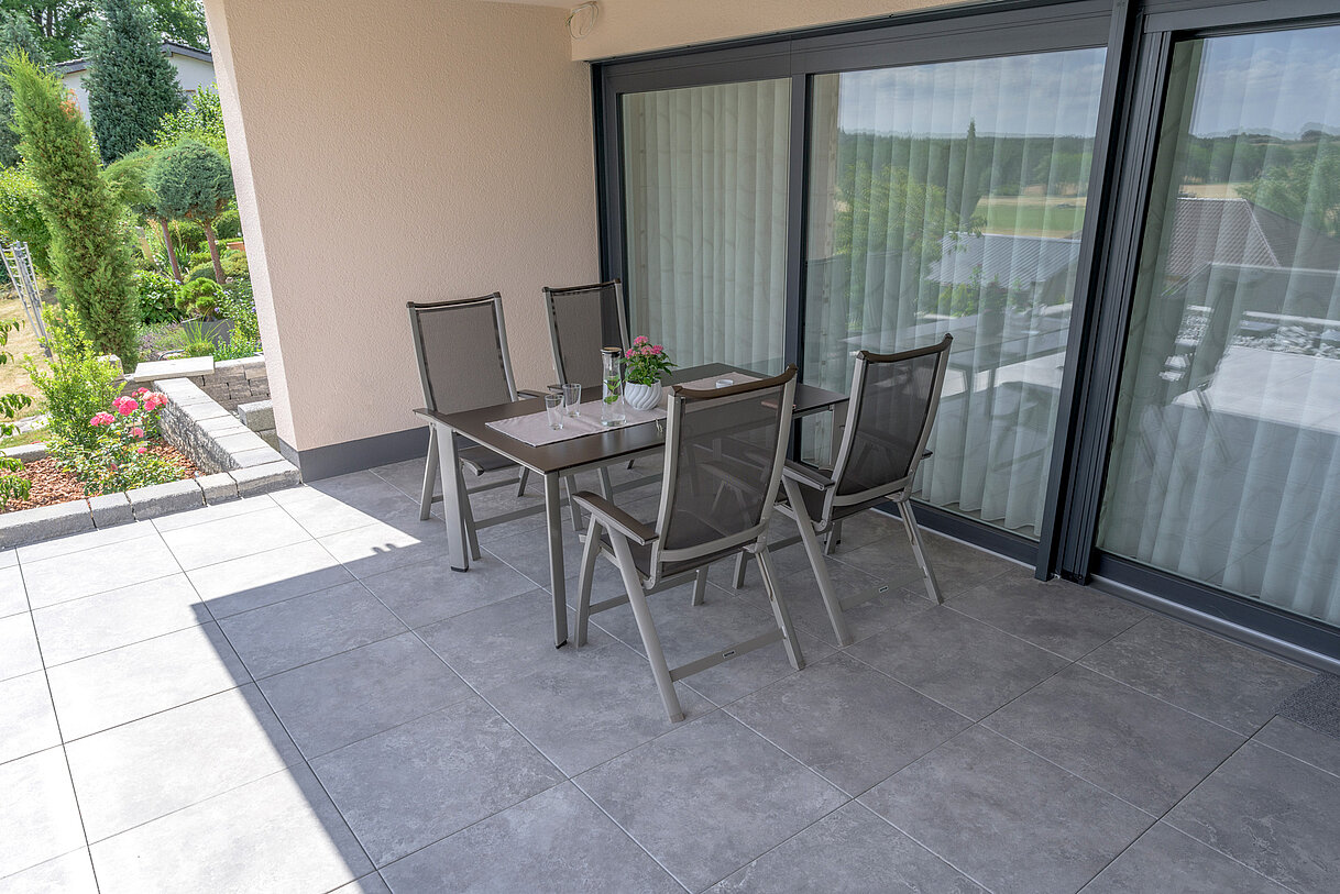 - Achten Sie beim Aufstellen von Gegenständen wie Blumentöpfe o.ä. auf den RSF 5 Oberflächen auf eine ausreichende Belüftung von unten zur Vermeidung von Staunässe