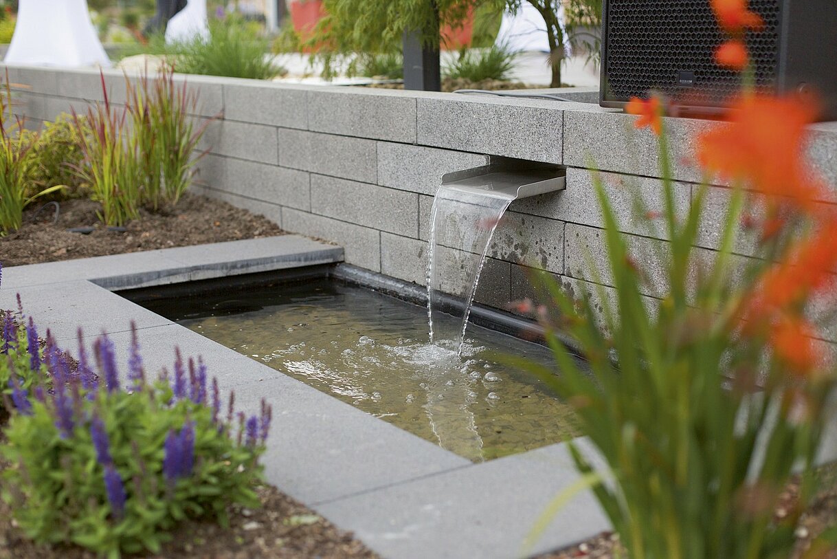 Mauersystem mit modern-architektonischem Stil. Langes Steinformat und geringe Schichthöhe