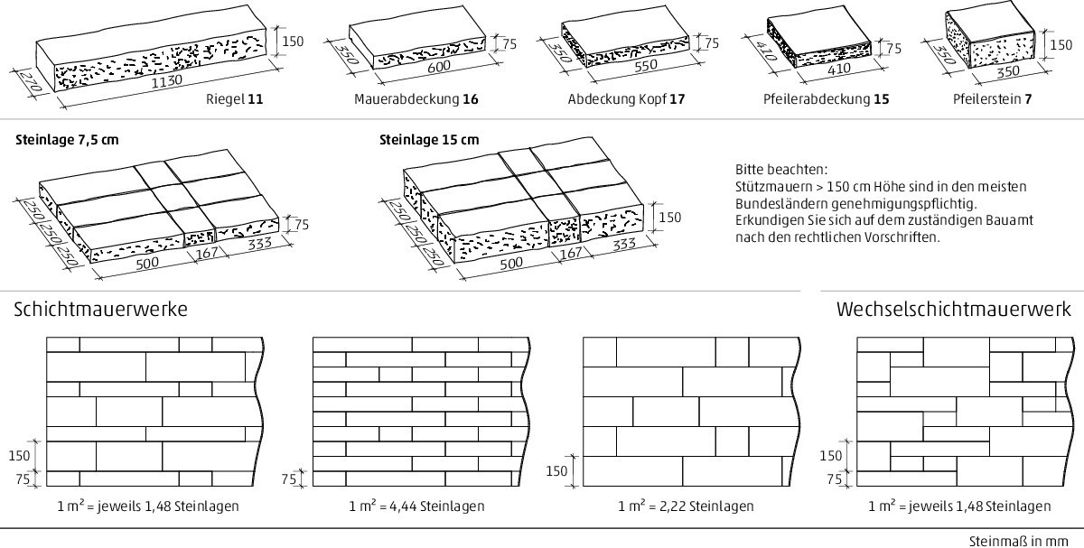 - Aufbau als Schichtmauerwerk oder Wechselschichtmauerwerk möglich