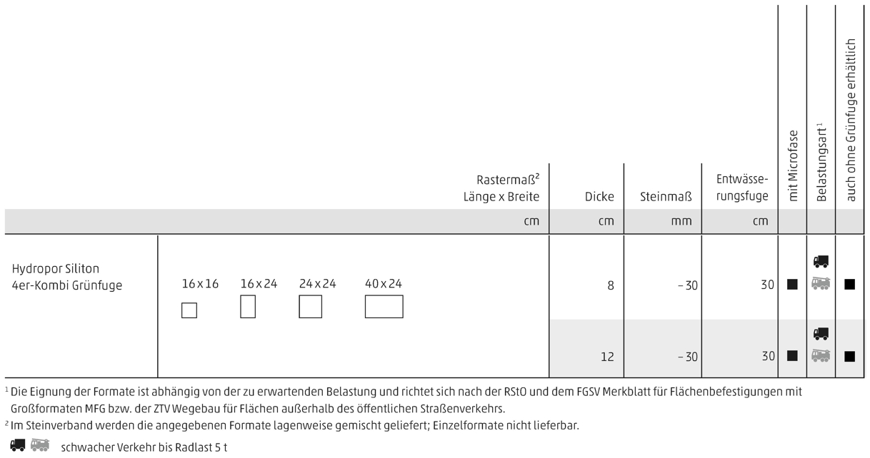 Hydropor Siliton Grünfuge 4-er Kombi ist ein Pflastersystem, das durch seine Klarheit und Gestaltungsvielfalt besticht. Siliton verleiht Flächen eine sachliche, prägnante Struktur mit hoher ästhetischer Anmutung und hat als Klassiker bei vielen Planern bereits an Geltung erlangt.