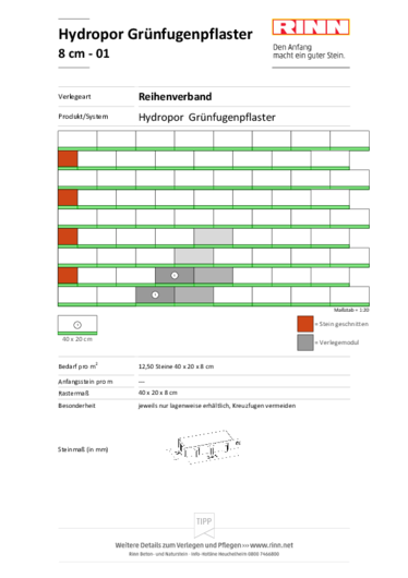 Das neue Format 40 x 20 cm kann mit den Systemen Padio 20, Hydropor Padio oder Hydropor KL Grünfugenplatte 40 x 20 cm kombiniert verlegt werden. Mehr dazu im Kapitel Schwammstadt.