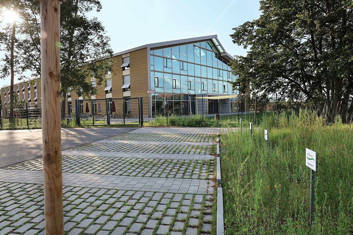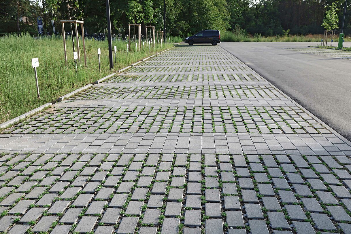 Nachhaltiges Ökopflaster mit breiter Fuge.