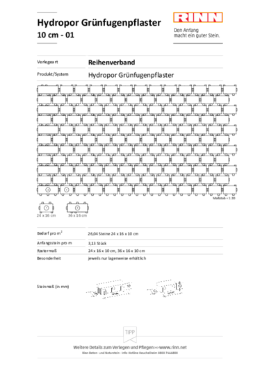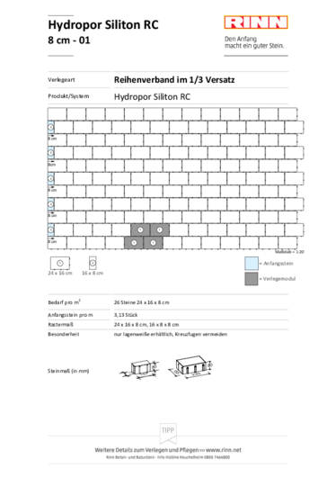 Hydropor Siliton ist das ideale Pflaster für eine zusammenhängende Gestaltung von Splitt- und Grünfugen mit Steinen im Einzelformat. Der Stein mit der umlaufenden 5 mm Splittfuge kann Regenwasser gut abführen. Die Verlegung kann in gleicher Reihe fließend in eine 3,2 cm breite Grünfuge übergehend verlegt werden. Diese bietet ausreichend Spielraum zum Einbringen von Pflanzsubstrat.