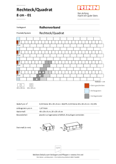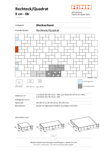 Das Rechteck- und Quadratpflaster basiert auf dem klassischen Steinformat von 10 x 20 cm. Mit 16 Steingrößen in verschiedenen Dicken lassen sich fast alle Anforderungen technischer und gestalterischer Art erfüllen. Mit der ausgeprägten Fase an der Steinkante ergibt sich ein gut erkennbares, aber dennoch gleichmäßiges Fugenbild, es sind auch Steinformate mit geringer Fase oder auch ohne Fase im Angebot. Die Steinformate eignen sich für alle Anwendungen im Bereich von Gehwegen und Plätzen und werden vielerorts in städtebaulichen Konzepten eingesetzt.