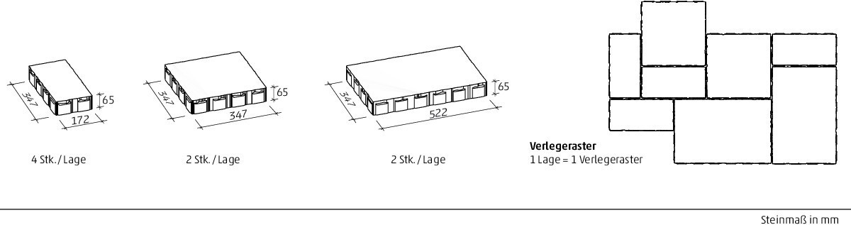 - 3 Steingrößen werden lagenweise gemischt geliefert
