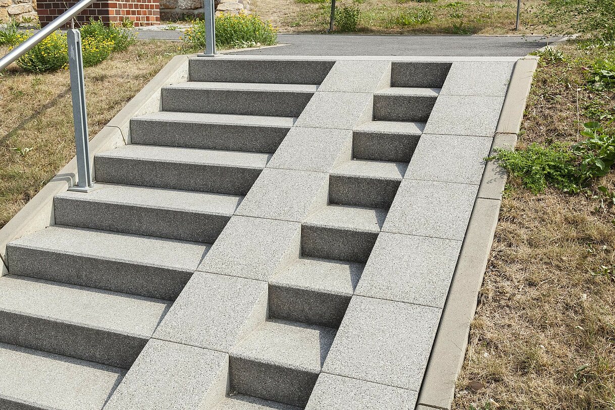 - Sichtbeton Grau mit Rutschhemmung PR 11 auf Trittflächen