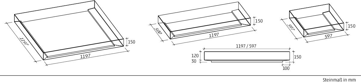 - "Schwebendes" Design (mit Untertritt an drei Seiten)