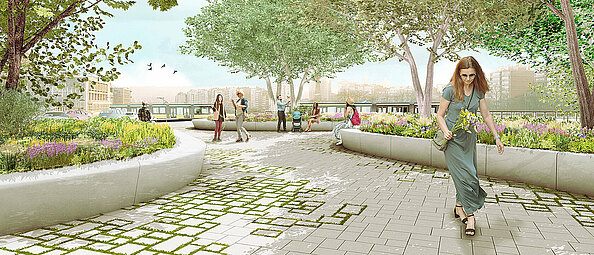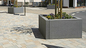 Wie können wir unsere Städte klimaresilienter und lebenswerter gestalten? Diese Frage treibt uns um, wenn es darum geht, auf Hitzestress, Starkregen und den Wunsch nach mehr urbaner Lebensqualität zu reagieren. Mit unseren Lösungen geben wir Ihnen konkrete Antworten für Ihre Projekte. Schwammstadt Bodenbeläge und Urbane Grüninseln sind nicht nur ästhetische Bausteine für attraktive Platzgestaltungen, sondern integrieren Schwammstadt-Prinzipien. So wird jeder geplante Freiraum zu einem Teil eines größeren Ganzen – eines funktionalen, grünen Systems, das unsere Städte widerstandsfähiger, kühler und lebenswerter macht.