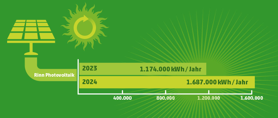 Rund 500.000 kWh mehr Strom haben wir 2024 über Photovoltaik erzeugt. Die Anlage in Stadtroda und auch die Reinigung der älteren Photovoltaikanlagen 2024 haben sich bemerkbar gemacht. Dadurch konnten wir sowohl den Anteil der erneuerbaren Energien um 4 % auf 66 % erhöhen als auch den PV-Anteil am Stromverbrauch um 4 % auf inzwischen gut 16 %.