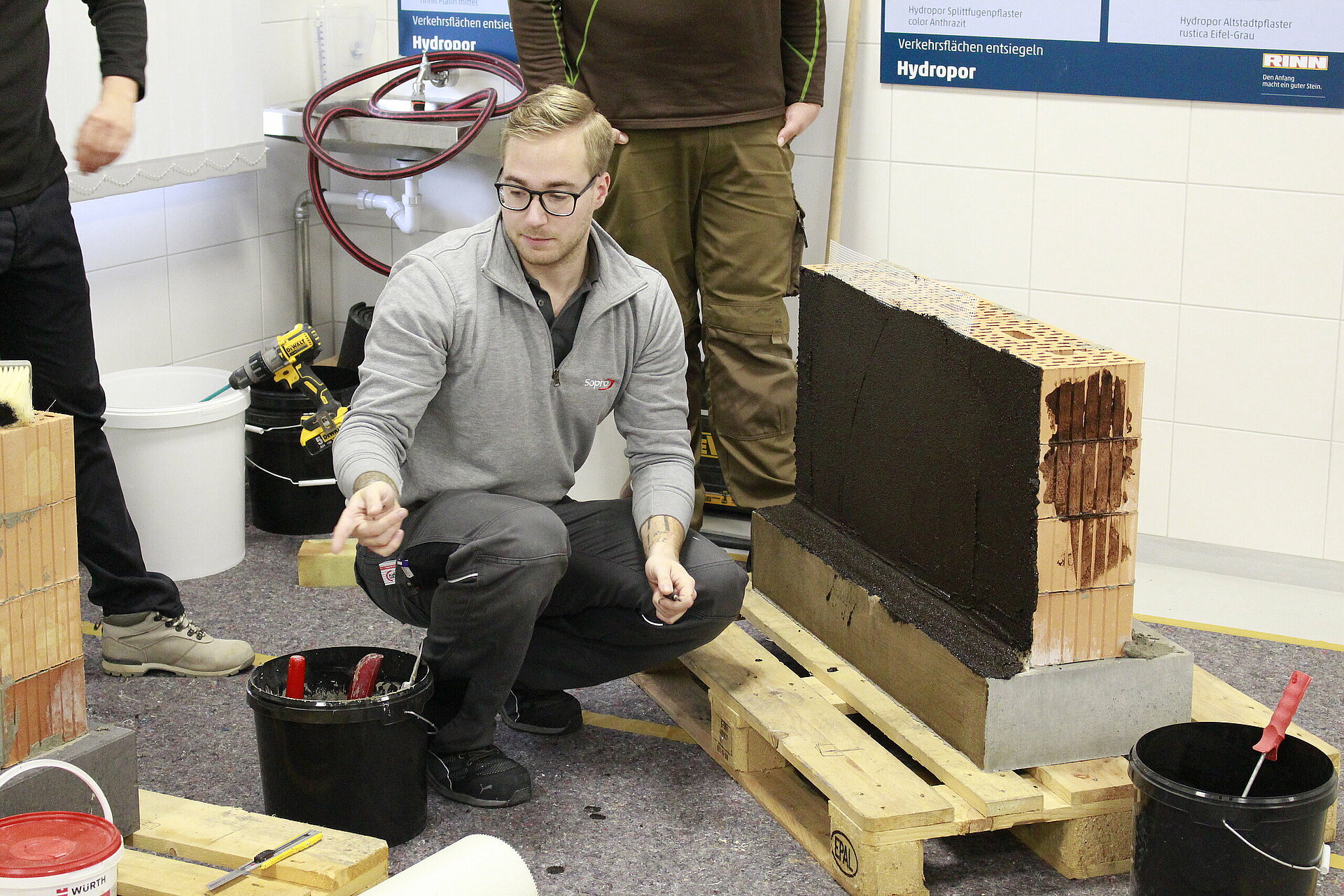 - Um den Auszubildenden und den Betrieben zu Beginn der Lehrzeit den Einstieg zu erleichtern werden theoretische und praktische Grundkenntnisse zum richtigen Umgang mit Werkzeugen und fachgerechten Einbau von Betonwerkstein-Erzeugnissen vermittelt.