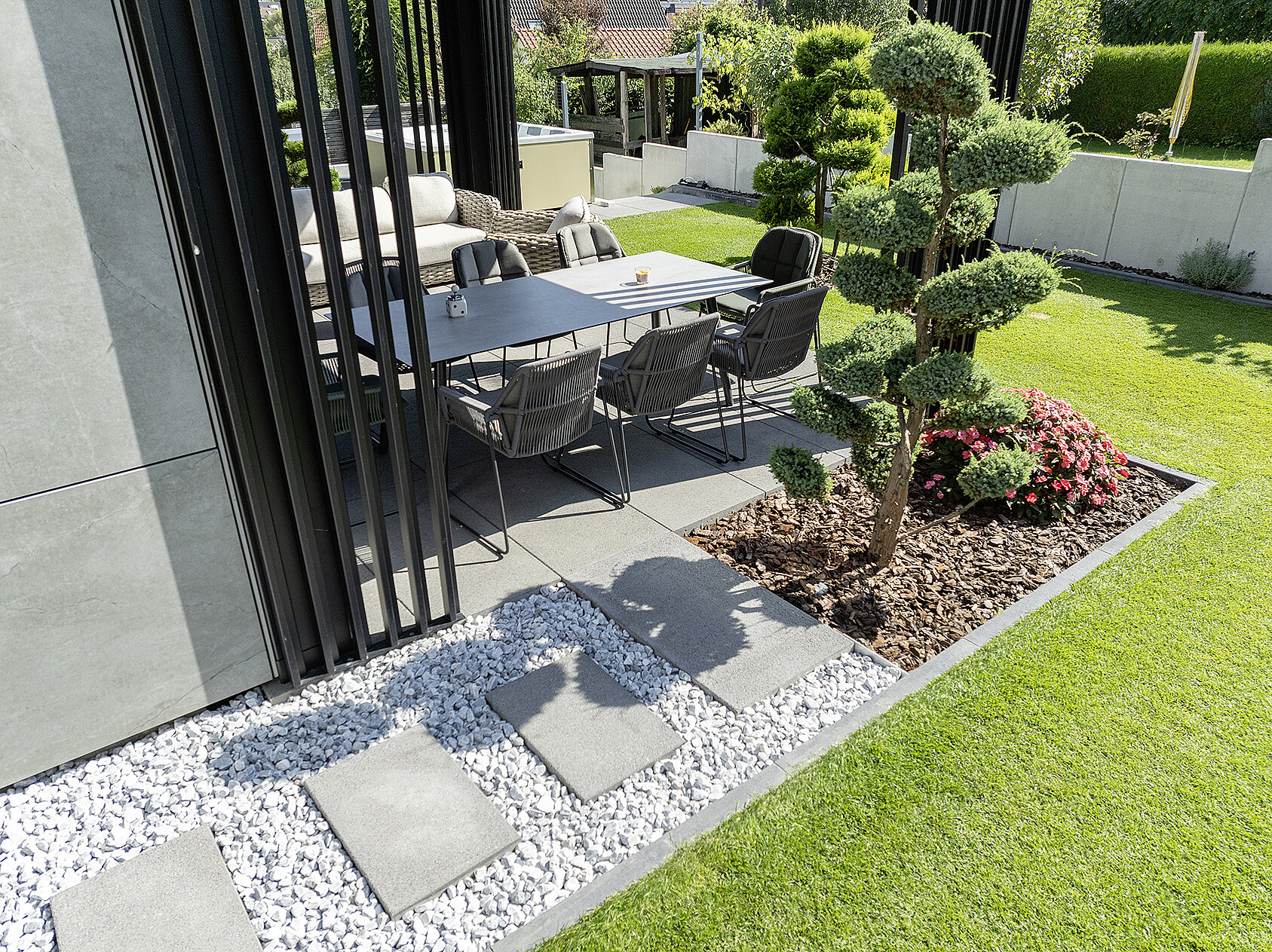 - Klarer, zeitloser Gartenstil mit ruhiger, aufgeräumter Gestaltung