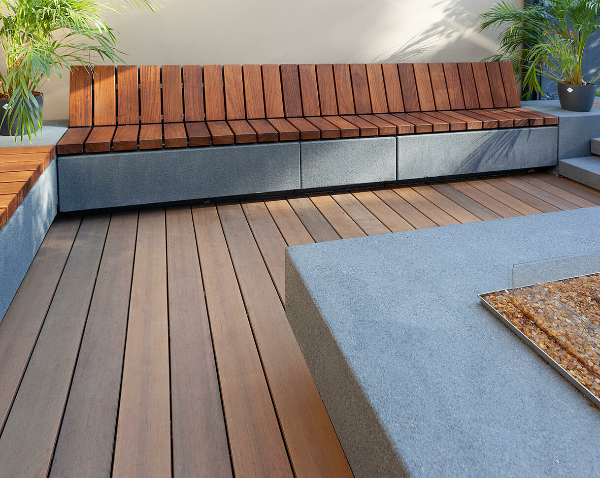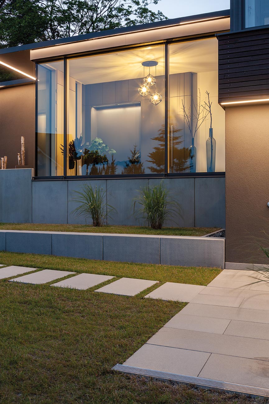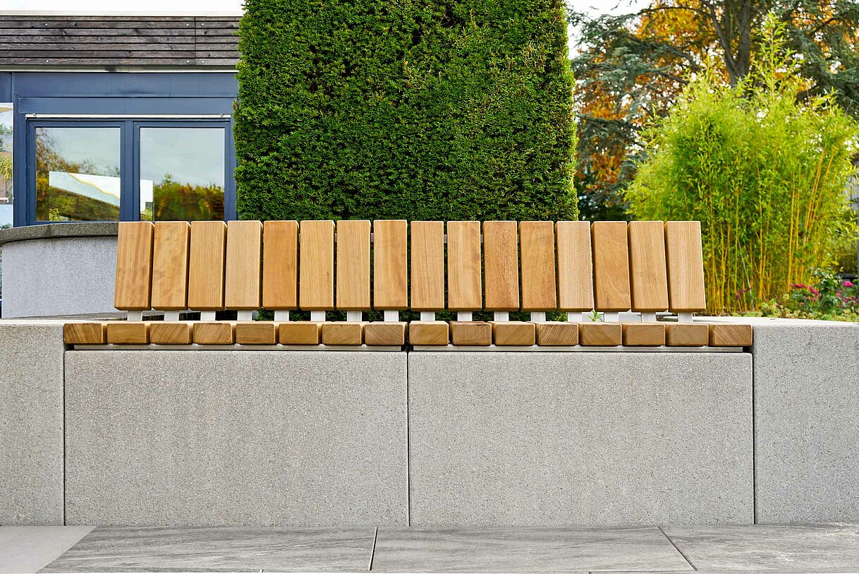 Architektonisches Design in cultstone Oberfläche. Auch als Einfassung. Mit Holzauflage möglich.