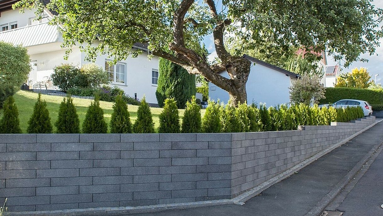 - Freistehend bis 1,25 m Höhe, mit Hinterfüllung bis 0,75 m