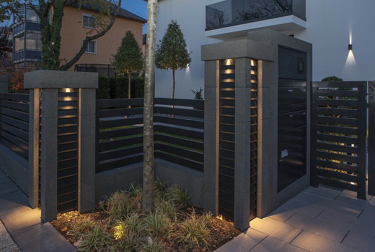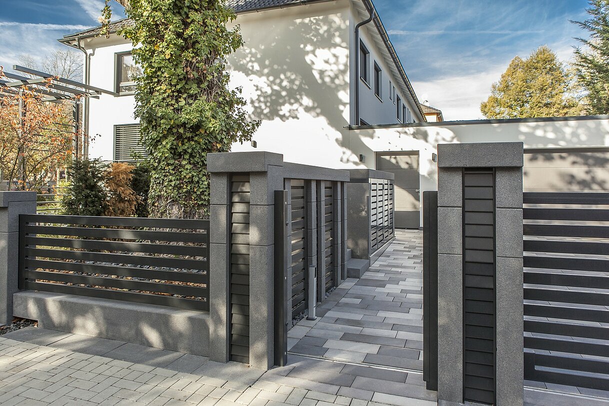 - Grundstückseinfriedung, zum Anbringen von Pforten, Toren und Zäunen