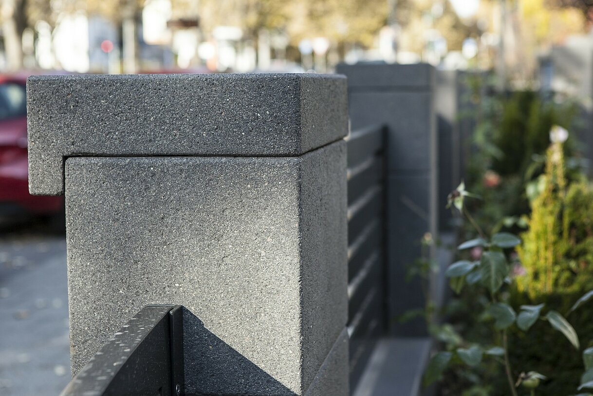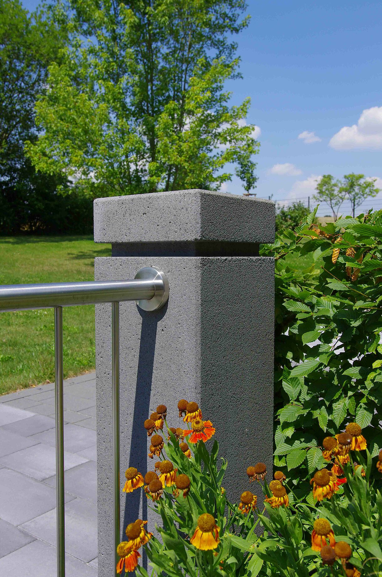 Passend für verschiedene Pfeilerdurchmesser und Mauerbreiten. Mit Wassernase.