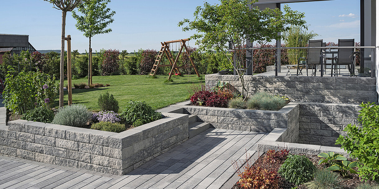 Wer den natürlichen Charme einer Natursteinmauer mit den Vorzügen eines Baukastensystems sucht, wird bei der Romano Mauer sicher fündig. Egal ob freistehend, hinterfüllt zum Ausgleich von Höhenunterschieden oder beides in Kombination: 14 maßgenaue Komponenten sorgen für maximale Flexibilität bei der Gestaltung. Mit Stufen, Bodenbelägen oder Einfassungen aus der rustica Serie finden Sie bei Rinn die Komponenten, um Ihre Gestaltung abzurunden.