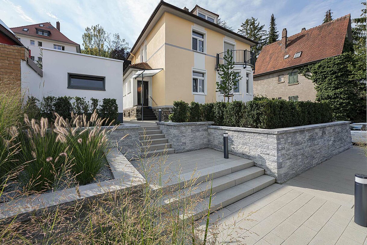 - Moderne, homogene Optik mit geradliniger Fuge und bossierten Sichtseiten
