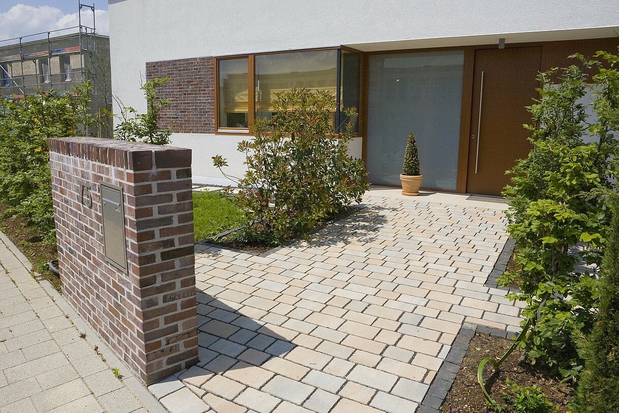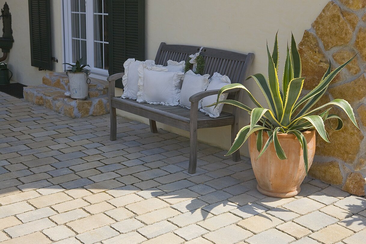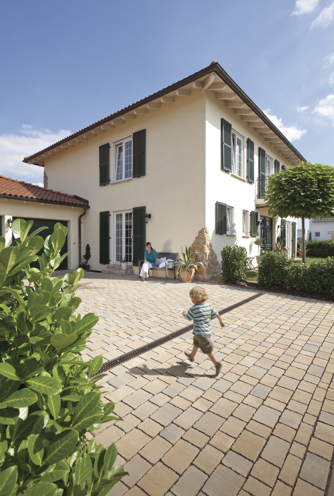 Hydropor La Strada ist ein Pflaster, das für eine unregelmäßige Verlegung konzipiert ist: Die Steine werden ohne eine vorbestimmte Reihenfolge verlegt, angeordnet in verschieden breiten Reihen von 15 und 18 cm. So entsteht eine optisch sehr abwechslungsreiche Fläche. Bei einem modernen Baustil unterbricht das lebendige Fugenbild die strengen Linien. Und natürlich passt es ebenso zur typischen Lockerheit mediterraner Gestaltung.
