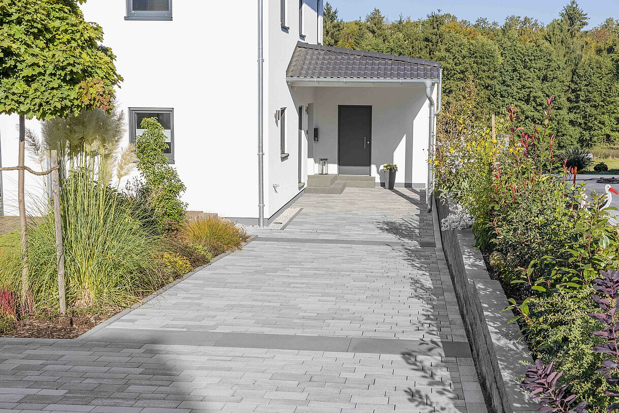 Hydropor Lukano KlimaPlus vereint die besten Eigenschaften, die ein Pflastersystem für eine klimafreundliche Gestaltung haben kann: Durch seine breiten Längsfugen kann Regenwasser versickern und so schützt es den Wasserkreislauf. Zudem enthält es 90 % weniger Zement und spart somit bis zu 60 % CO2 in seiner Herstellung. Gut geeignet ist es für versiegelungsfreie Einfahrten, Höfe und Wege in den Stilen – klassisch, modern oder Landhausstil.