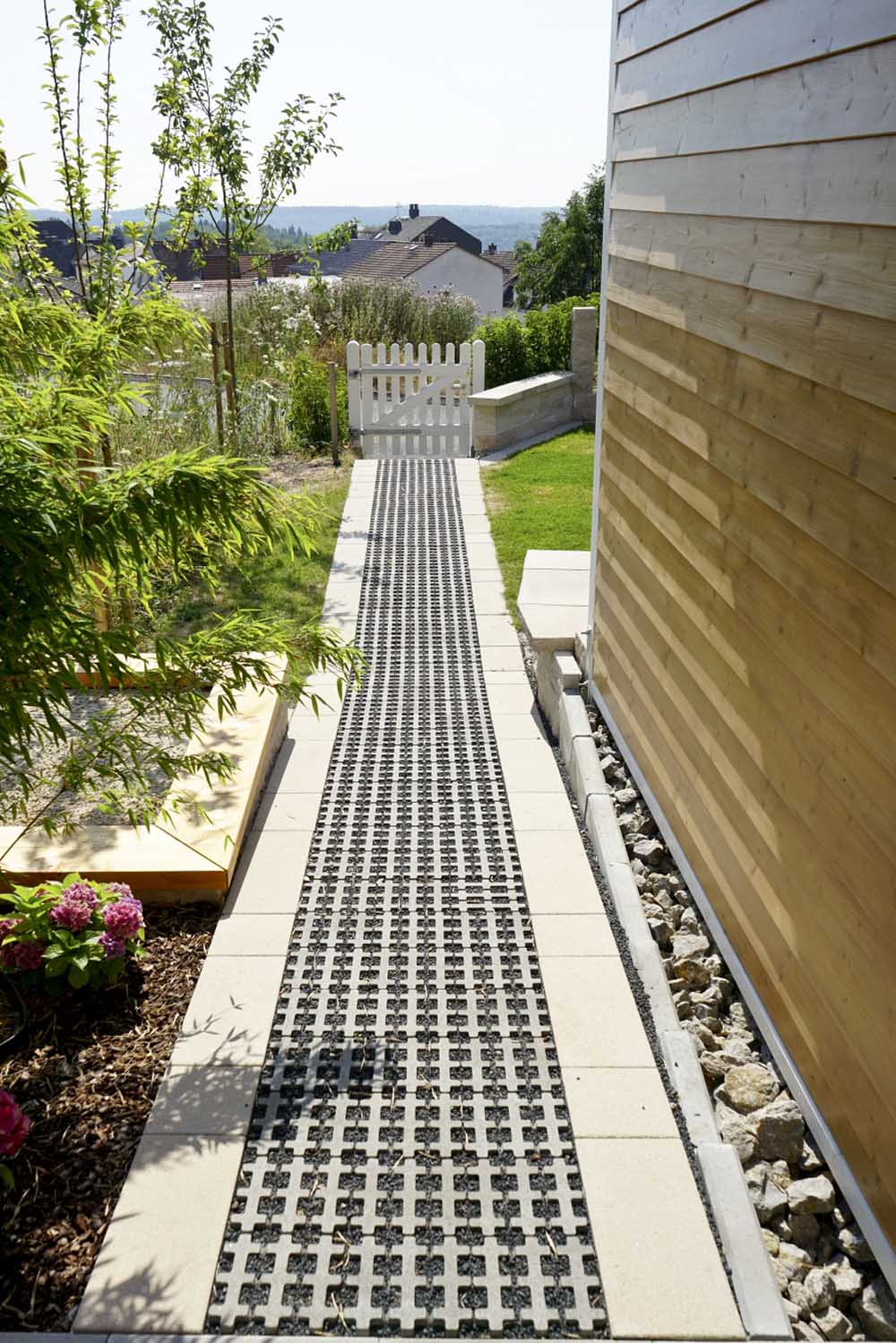 Kleinformatiger Rasengitterstein mit kleinen Kammern. Handlich zu verlegen. Gut begehbar.