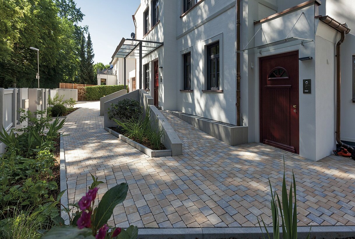 Wenn Sie Alt und Neu miteinander kombinieren wollen, dann bietet Ihnen Rinn mit dem Altstadtpflaster ein ausgereiftes Pflastersystem. Es fügt sich gut in ein architektonisch gewachsenes Umfeld ein, eignet sich aber auch als stilistischer Akzent zu moderner Architektur. Drei Steingrößen in der Oberfläche rustica mit drei Farben lassen Ihnen viele Gestaltungsmöglichkeiten.