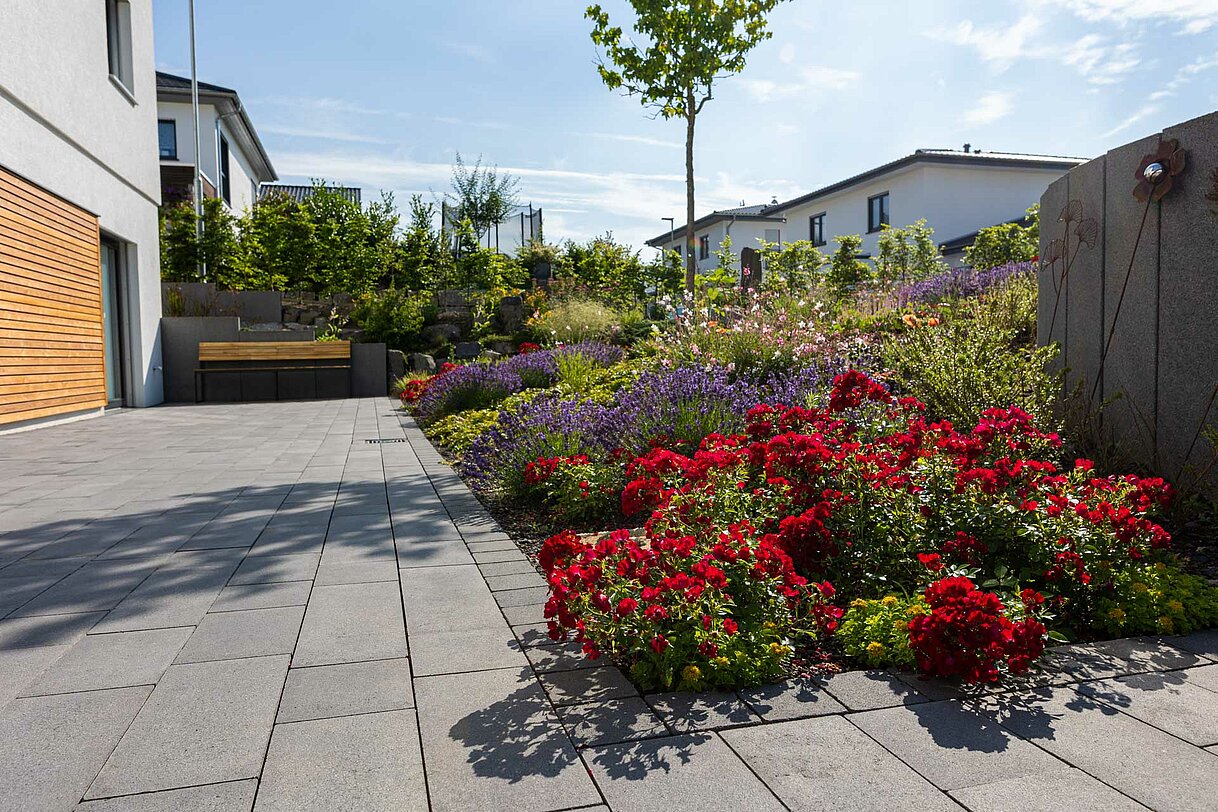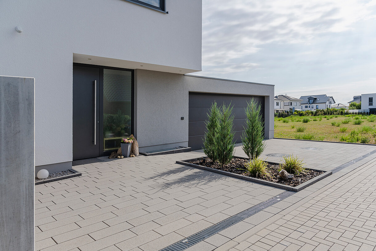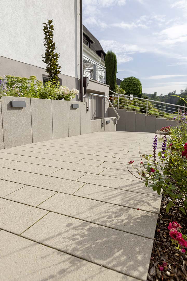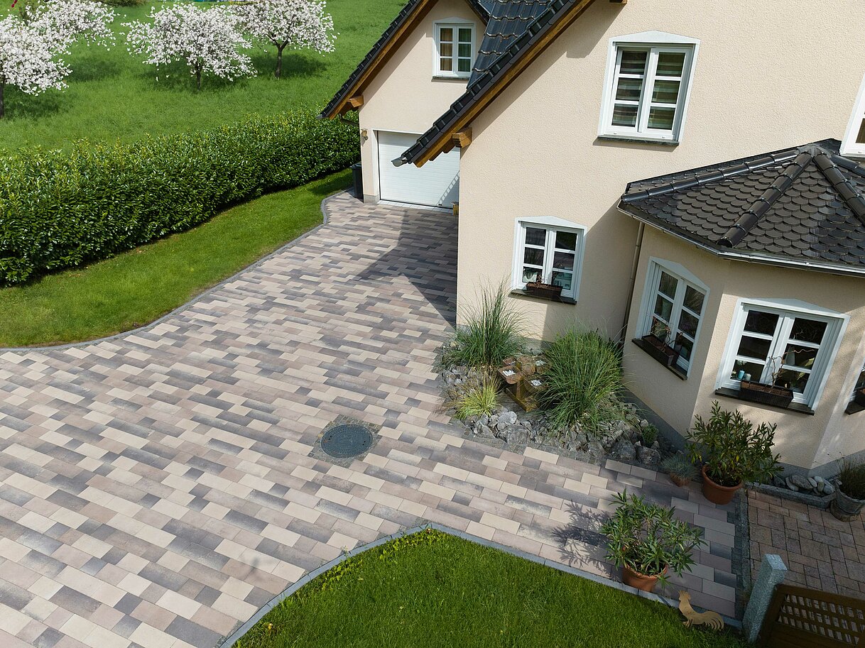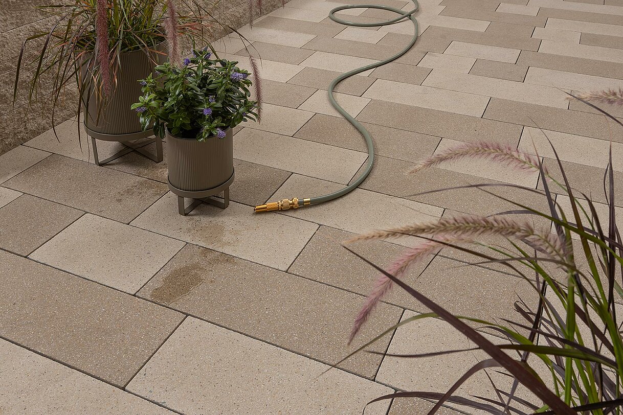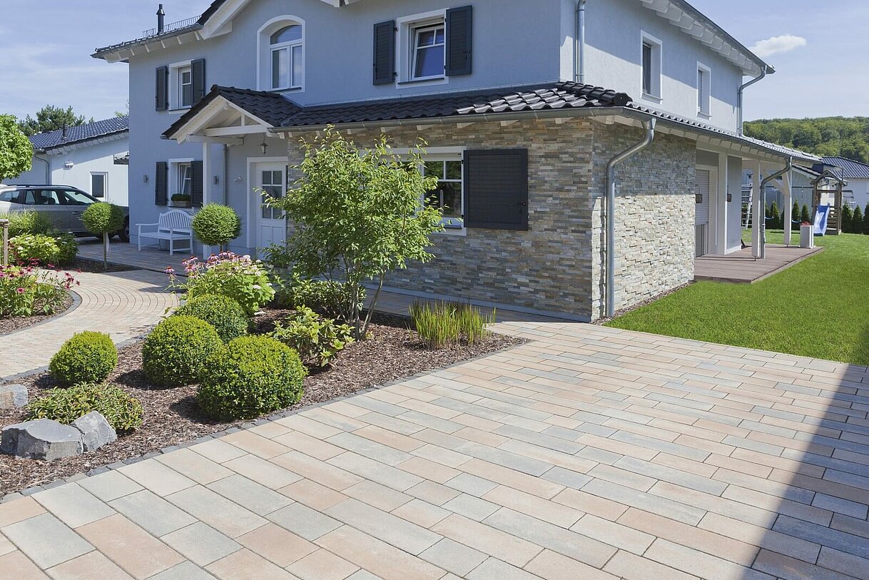 - Elegantes Pflastersystem mit großer Farbauswahl und vielen Kombinationsmöglichkeiten