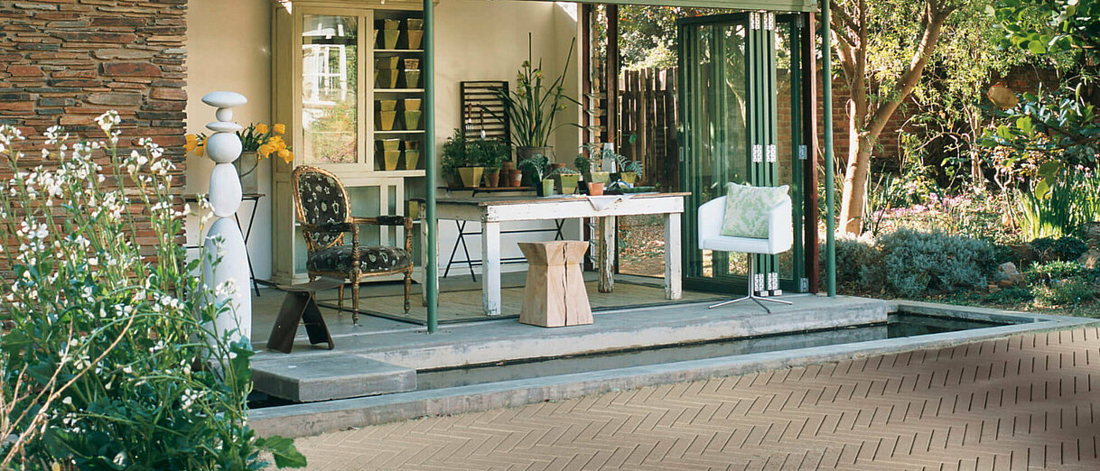 Slimgo ist das Parkett für draußen – edel, robust, individuell und immer ein Hingucker.