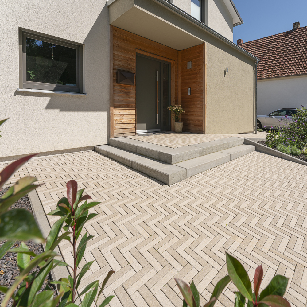 Slimgo kann in vielen verschiedenen Mustern verlegt werden, die alle ein ganz anderes Gesamtbild erzeugen. Zeitlos oder voll im Trend? Das liegt ganz bei Ihnen. Sie haben die Wahl aus einer Vielzahl von Verlegemustern. Mit dem kompakten Riegelformat fühlt sich das Slimgo Pflaster auf Wegen oder in Teilbereichen ebenso wohl wie beim großen Auftritt auf der Fläche. Die schlanken Steine im Format 20 x 5 x 8 cm gibt es in vier Farbtönen aus der neo³ Kollektion. Dauerhaft und widerstandsfähig mit der 30 Jahre Produktgarantie behält das Pflaster seine Ästhetik auch über Jahre hinweg.