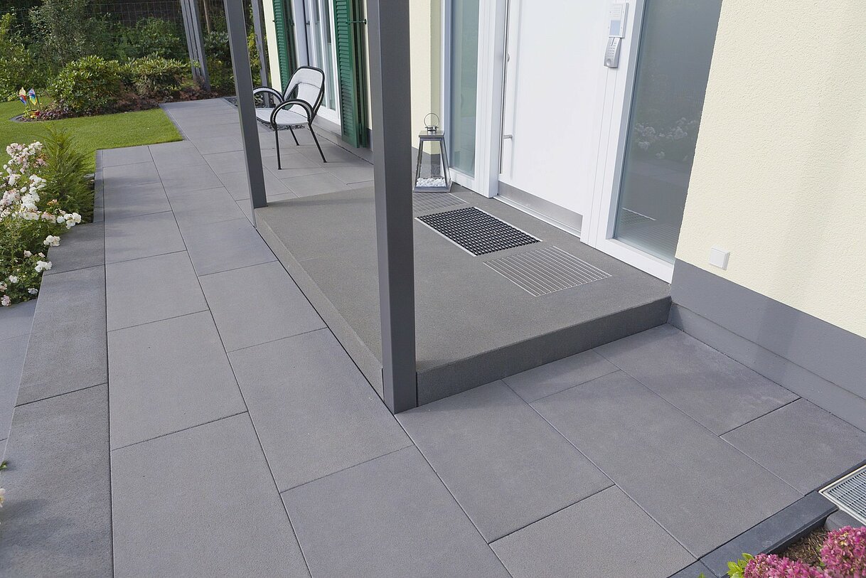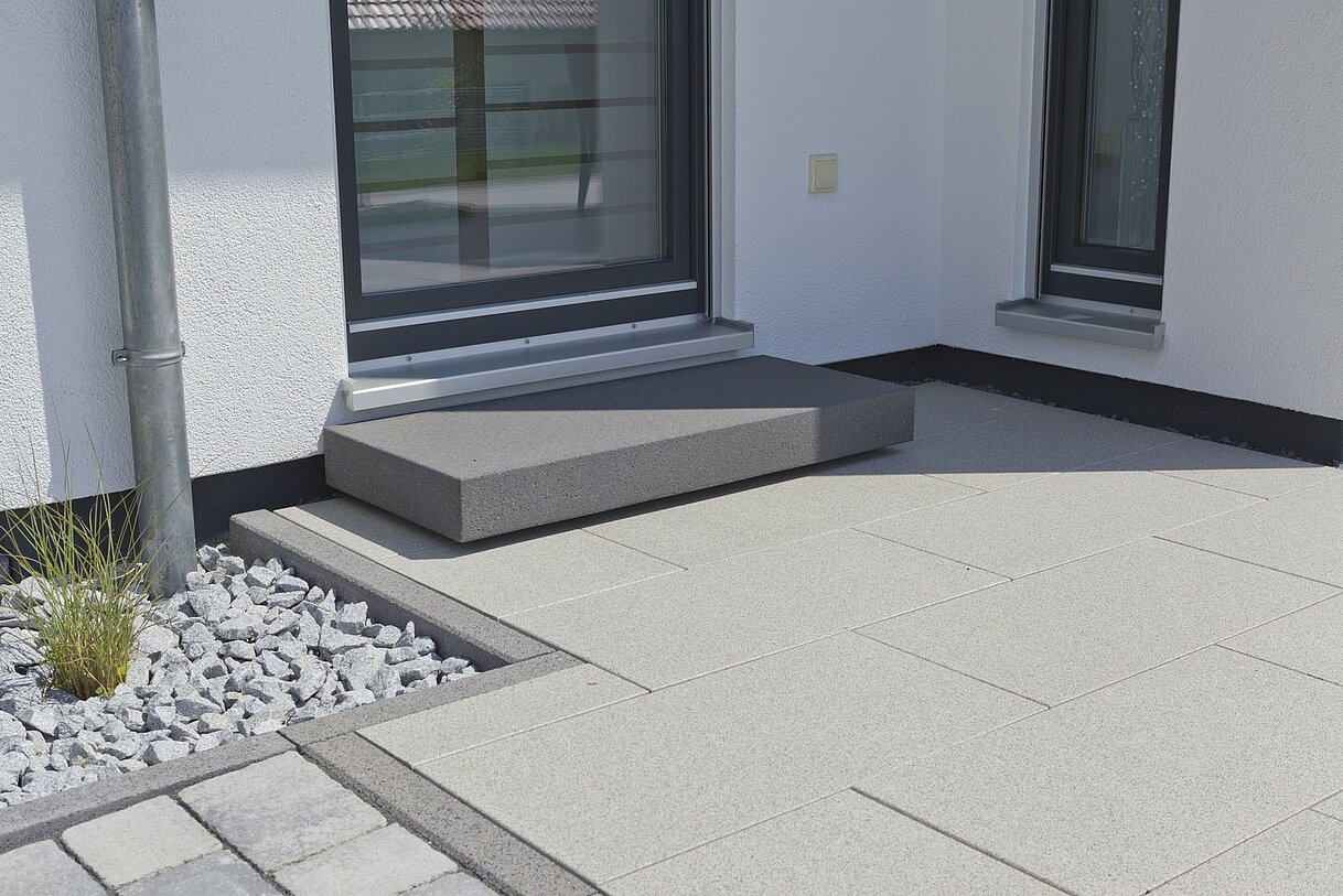 - Sichtbeton Grau mit Rutschhemmung PR 11 auf der Trittfläche