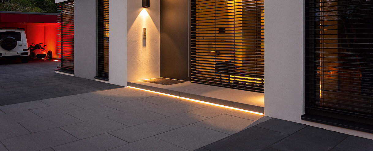 - Auf Wunsch mit integriertem Fußabstreifer oder LED-Lichtleisten